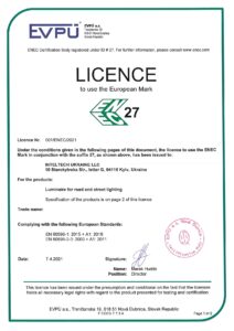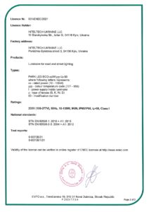 В рамках ліцензування ENEC була випробувана кожна деталь наших світильників, а також виробів в цілому. Комплектуючі світильників (такі як джерело живлення (драйвер), світлодіодний модуль, тощо) також пройшли всі випробування згідно законодавства Європейського Союзу. Дослідження підтвердили, що наша продукція відповідає вимогам безпеки та стандартам EN 60598-1 та EN 60598-2-3. Випромінювання світильників також визнано безпечним для людського ока, відповідно до всіх українських та європейських норм.