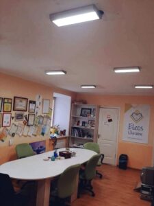 Зважаючи на те, що більшість занять проходить всередині центру, важливе значення має освітлення. В управлінні соціального служіння давно скаржились на старі світильники, які постійно мерехтіли, давали мало світла та перегорали . ITW SYSTEMS допомогла вирішити проблеми з освітленням та подарувала центру якісні світлодіодні світильники.